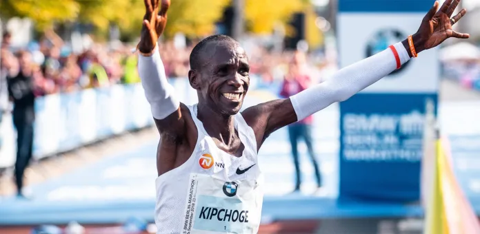 El keniano ostenta una mejor marca oficial de 2:01:09, registrada en Berlín en 2022, y es conocido mundialmente por ser el único atleta que ha completado los 42,195 kilómetros en menos de dos horas, en un evento no homologado (Desafío INEOS, 2019).